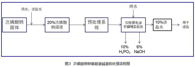 該項目次磷酸鈉使用雙極膜電滲析裝置制備酸液和堿液的建議處理流程如圖3所示: